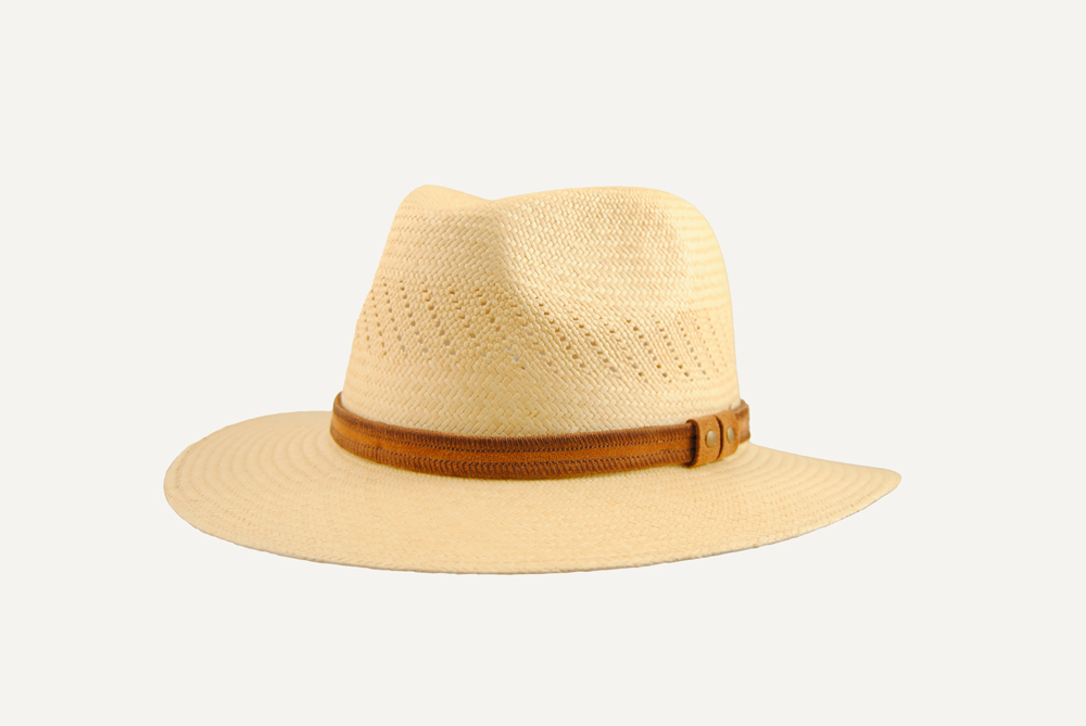 El sombrero está hecho de paja toquilla, tejido a mano en Ecuador, pero planchado y acabado en España. Este material es característico por su ligereza. Perfecto para el verano.