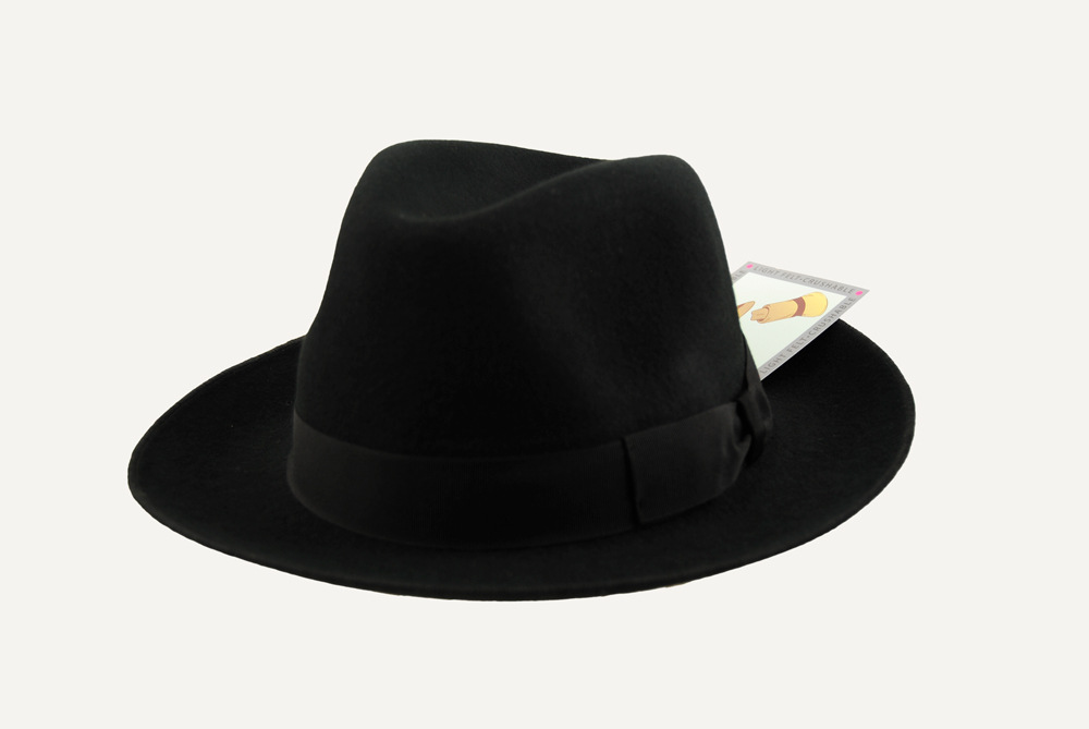 Sombrero de fieltro de 100% lana,  impermeable (waterproof) y indeformable (crushable).
