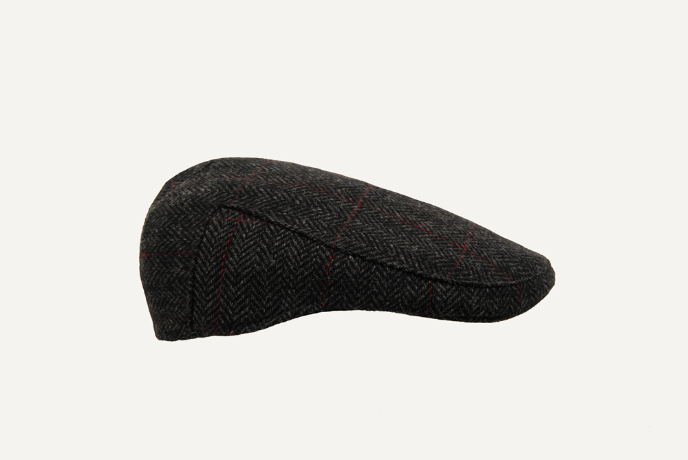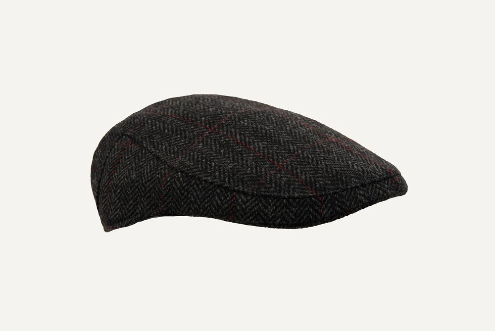 Gorra clásica en tono gris oscuro tejido en espiga .