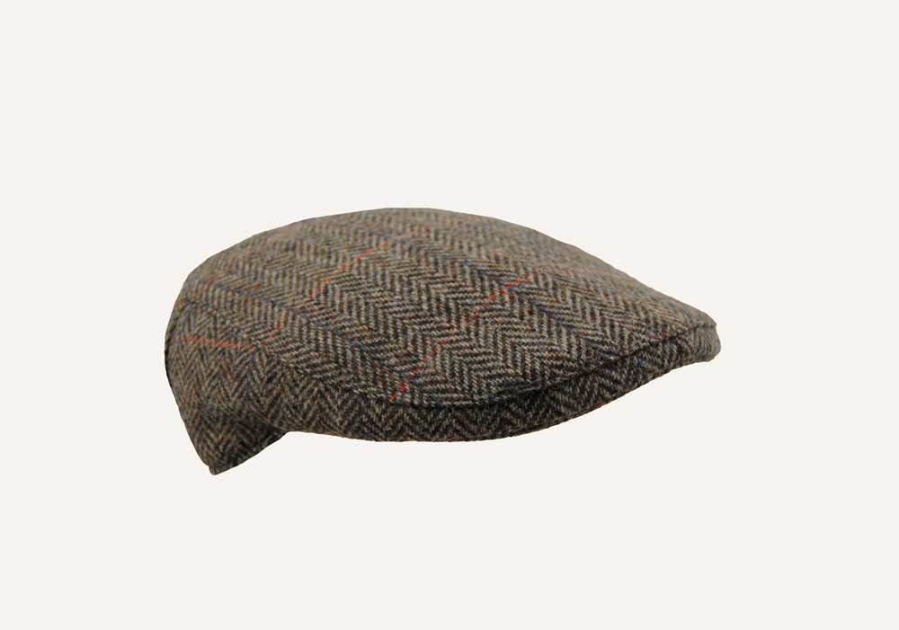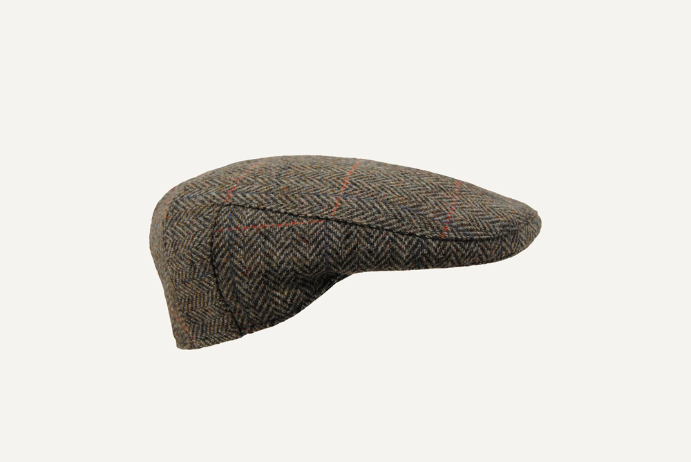 Gorra clásica en tono verde con mezcla en gris tejido en espiga .