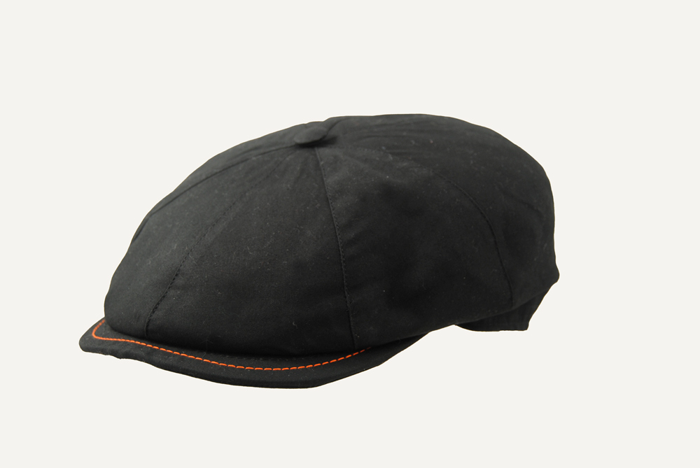 Gorra de 8 gajos de algodón encerado en color negra. Modelo impermeable con interior de franela ( 100% algodón)